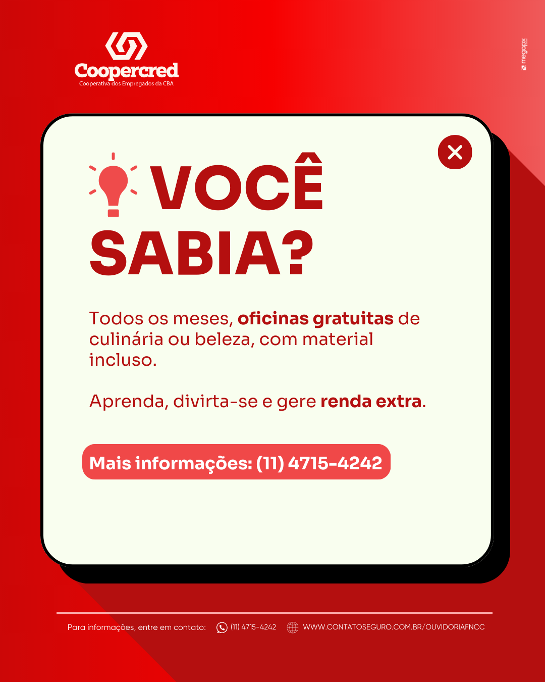 Você Sabia que a Coopercred CBA oferece Oficinas de Geração de Renda? 15 de outubro de 2025 Benefício, Comunicado, Oficinas Ler mais...