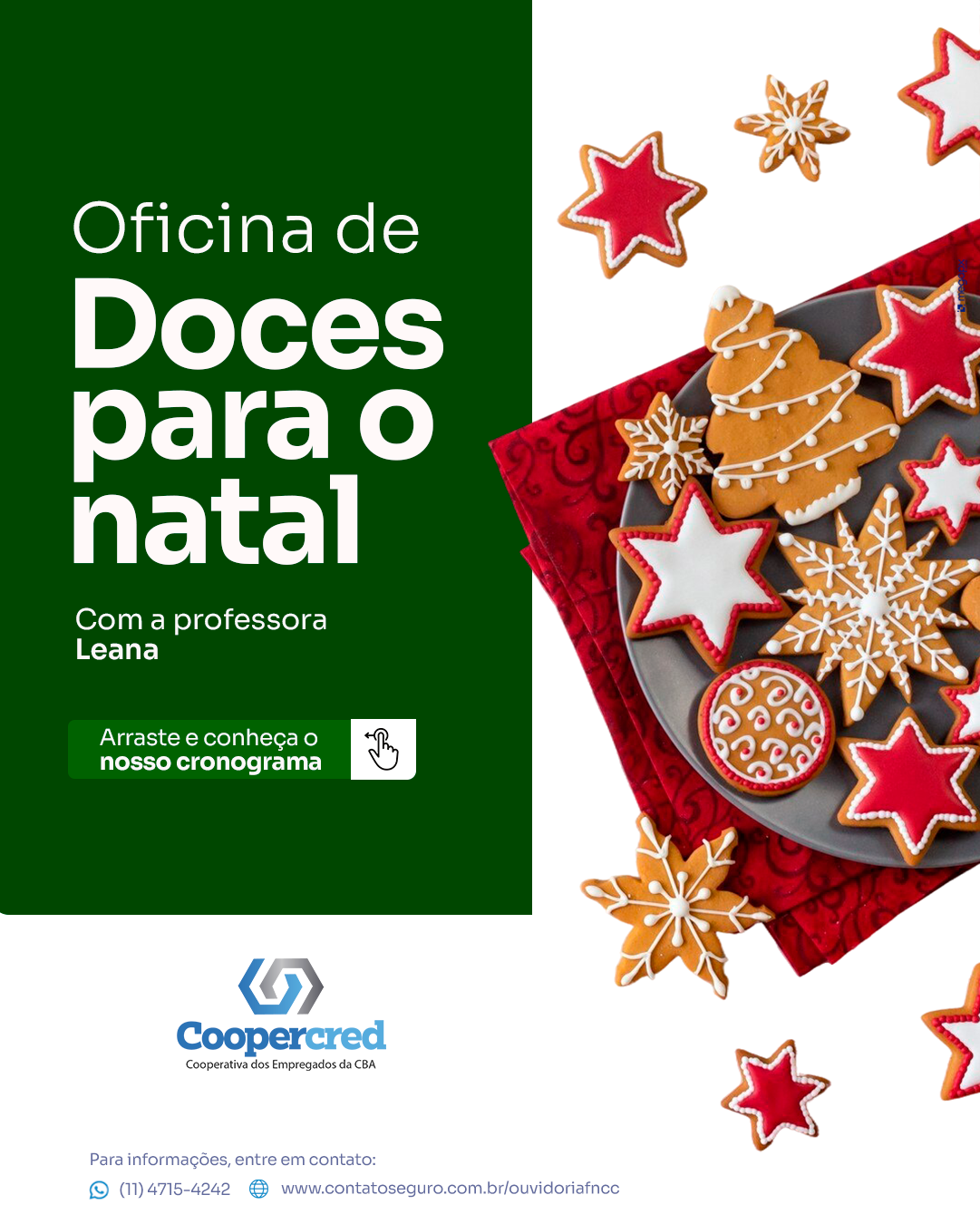 Oficina de Pães doces e sonhos da Coopercred CBA 5 de novembro de 2025 Benefício, Campanhas, Oficinas Ler mais...