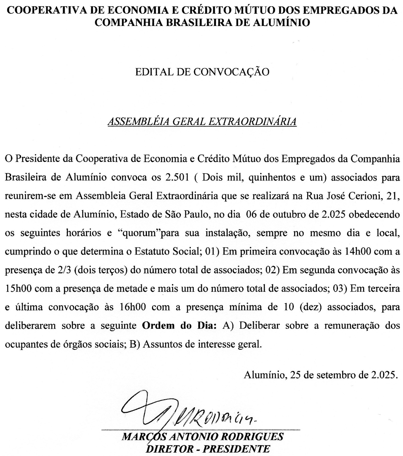 Edital de convocação